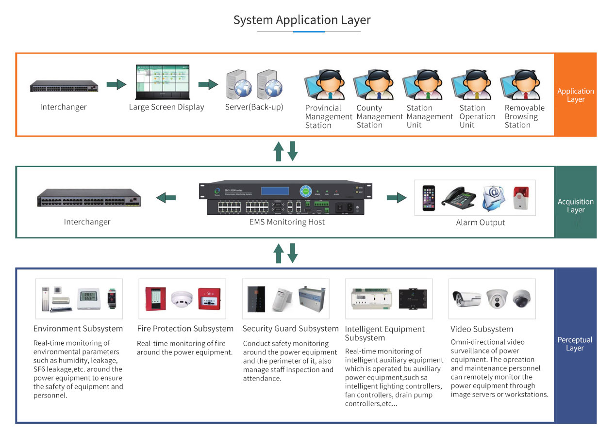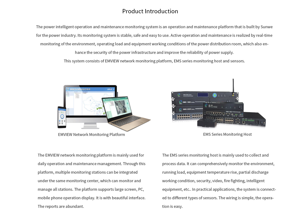 This system consists of EMVIEW network monitoring platform, EMS series monitoring host and sensors.
